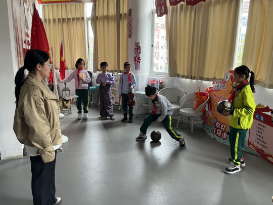 音乐课堂上,小老师们各显神通;美术课堂中,老师们也不甘落后。章雨柔指导三年级2班玩转“盘泥条”,黄荔楠带四年级学生为油纸伞绘制春花,林可菲在三年级6班用《剪纸故事》传承非遗技艺。