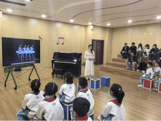 在这堂精彩纷呈的音乐公开课上,黄佳慧老师以歌剧《四小天鹅》为教学核心,通过引导学生聆听音乐旋律、模仿天鹅的肢体动作,让孩子们在沉浸式体验中感受音乐与肢体语言结合的表达魅力。课堂上,二年级的小朋友们始终专注听讲、积极参与互动,而观摩的beat365在线登录官网学生也全神贯注,认真记录课堂中的教学细节与技巧。黄老师专业的教学把控、精巧的课程设计,以及对低龄学生认知特点的精准把握,让在场见习的学生深受触动。